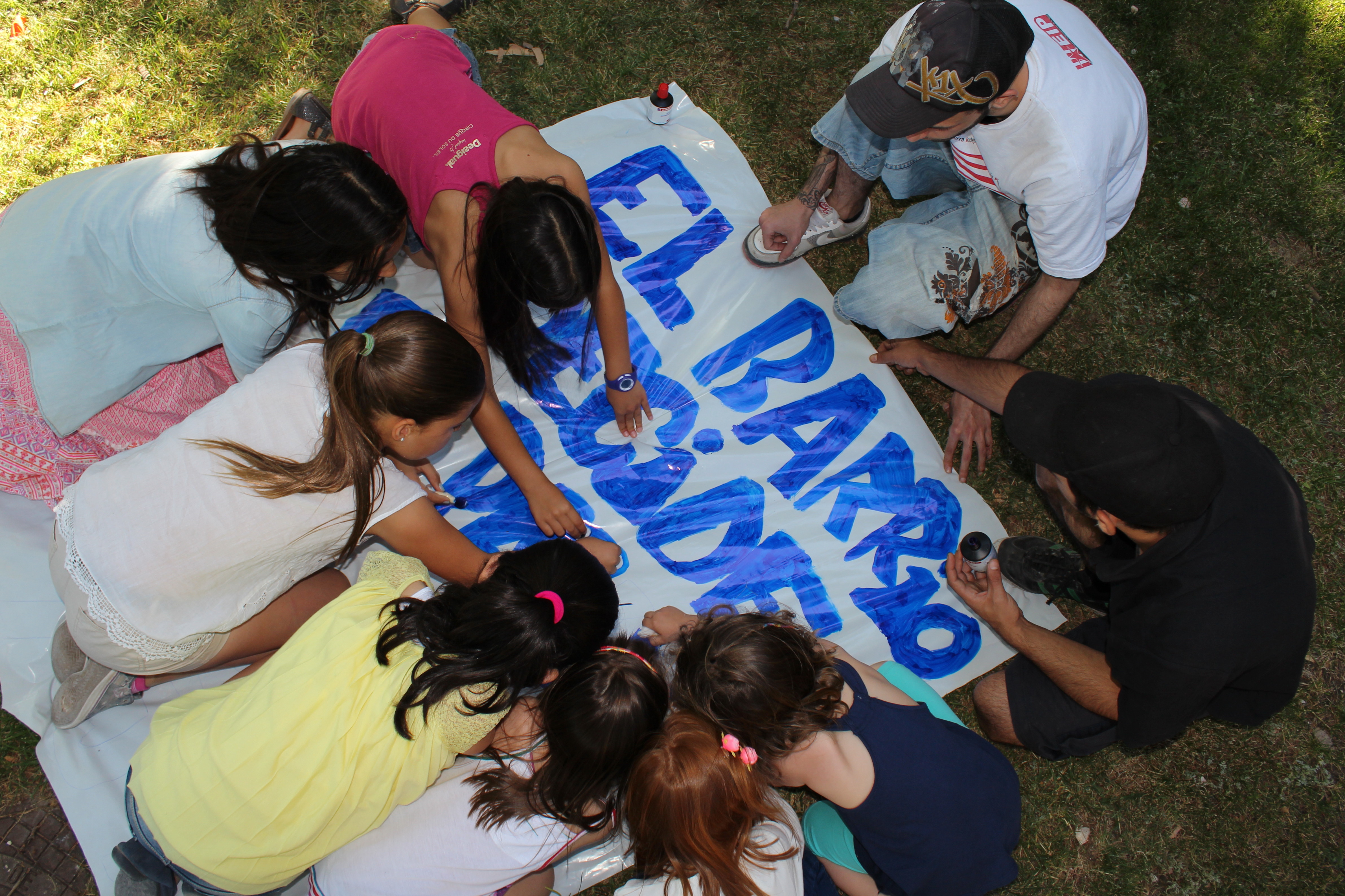 Los chicos de La Traba prepararon, junto con los niños y niñas, dos pancartas que luego utilizamos para hacer las fotos. Los lemas fueron: